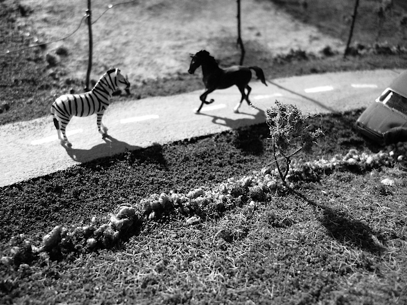 Un Zebre rencontre un cheval en 1978 sur le chemin de St.Barnabé....